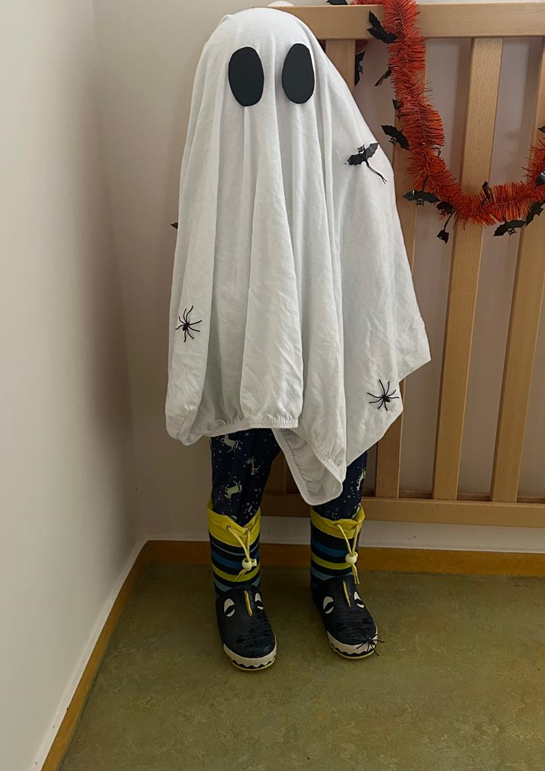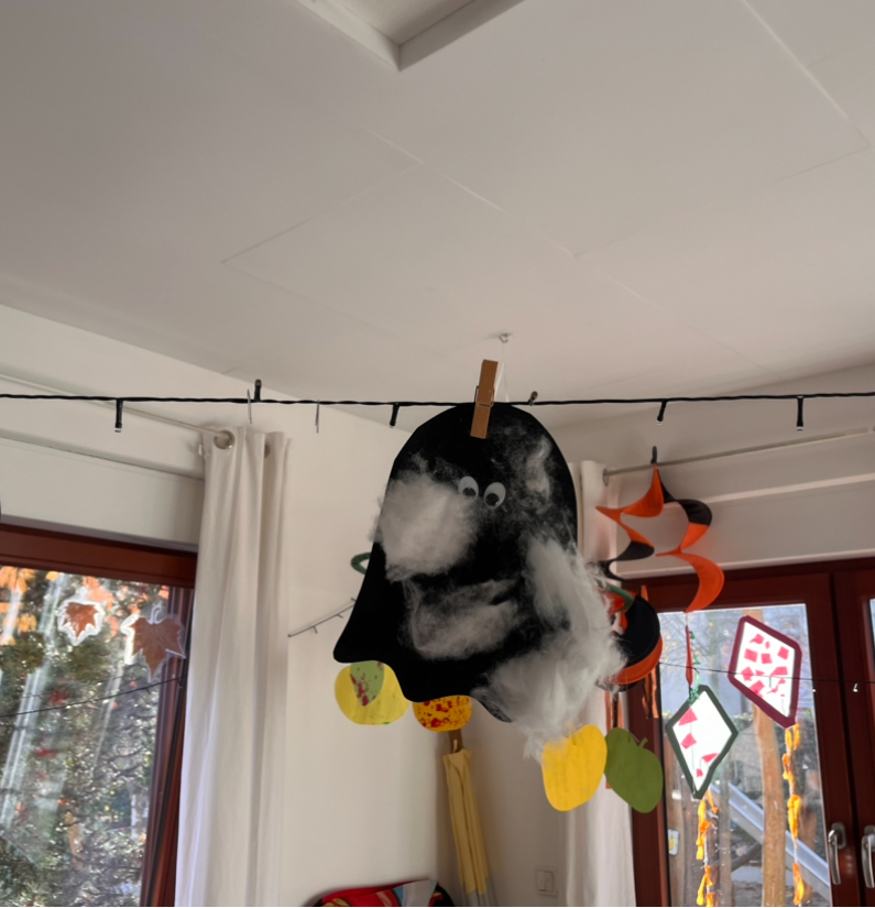 Auch die kleinen Geister sind schon eingezogen und bringen fröhliches Lachen, leuchtende Augen und ein kleines bisschen Gruselspaß mit sich. Beim Basteln, Singen und Dekorieren genießen die Kinder die besondere Atmosphäre dieser Jahreszeit und erleben, wie schön der Herbst sein kann.