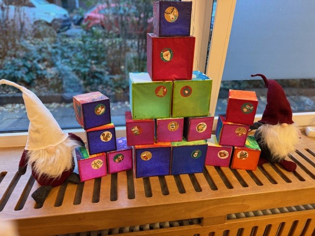 Im November haben wir gemeinsam mit den Kindern mit viel Freude und Engagement wunderschöne Adventskalender gestaltet. Mit großem Eifer wurde geschnitten, geschliffen, geklebt und bemalt. Überall war kreative Weihnachtsstimmung und große Vorfreude auf die bevorstehende Zeit zu spüren.