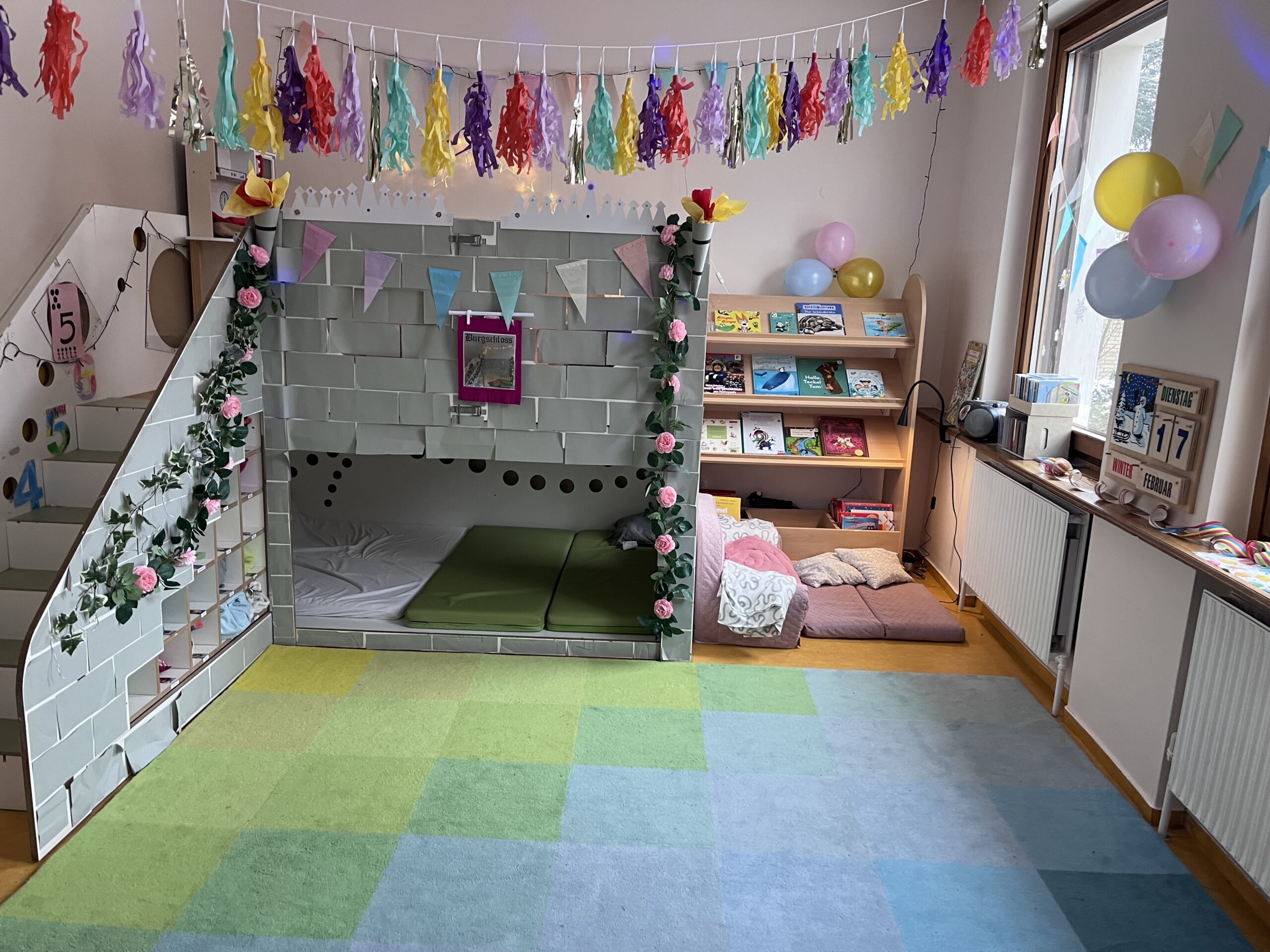 Unsere Kita verwandelte sich in ein bunt geschmücktes Märchenschloss – inspiriert von Dornröschen, Frau Holle , Hänsel und Gretel und dem Froschkönig.