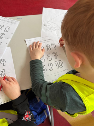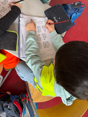 Unsere Vorschulkinder durften einen spannenden Vormittag in der Nahariya-Grundschule in Lichtenrade verbringen. Nach einer herzlichen Begrüßung und einer Einführung in die Schulregeln besuchten wir eine 1. Klasse, in der die Kinder nicht nur zuschauten, sondern aktiv am Unterricht teilnehmen durften. Gemeinsam mit den Schulkindern beschäftigten sie sich mit den „Verliebten Zahlen“, rechneten begeistert an der Tafel und bearbeiteten ein Arbeitsblatt. Dabei wurde deutlich, wie viel unsere Vorschulkinder bereits können und mit wie viel Motivation sie neue Herausforderungen annehmen.