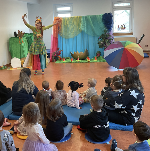 Den gelungenen Abschluss bildete ein buntes Mitmachtheater, bei dem alle eingeladen waren, aktiv teilzunehmen. Beim gemeinsamen Singen, Tanzen und Spielen hatten Groß und Klein viel Freude und ließen das Osterfest fröhlich ausklingen.